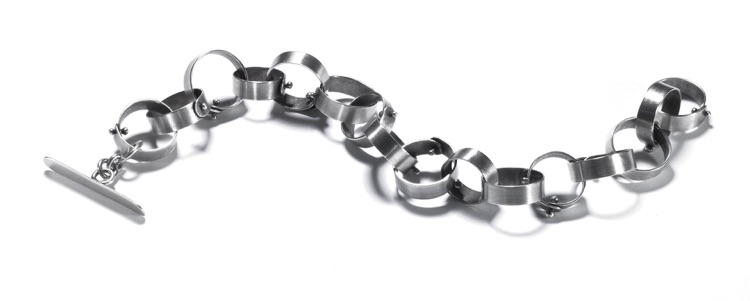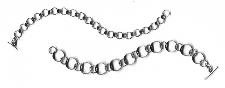 DOTS $240-sterling silver bracelet with sanding disk texture on the flat circles (7 1/4" long)