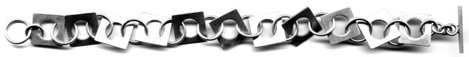 CIRCLE IN SQUARE $260-sterling silver bracelet with sanding disk texture on squares (7 3/4" long)