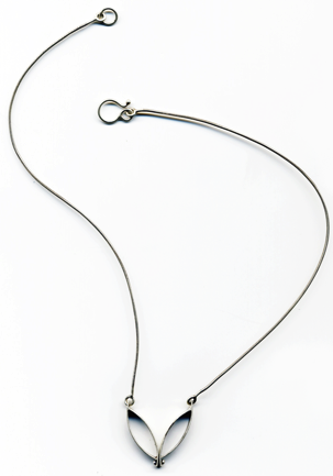 PETAL $145-sterling silver necklace of three convex petals that spin on the stamen (16" snake chain)
