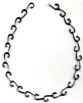 CURVE $390-sterling silver necklace with sanding disk texture on hammered portions of links (16" long)