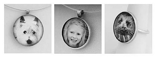 Using your choice of image from the photo shoot, Sarah will custom-make your item of jewelry in sterling silver with glass cabochon and photo-safe adhesive.