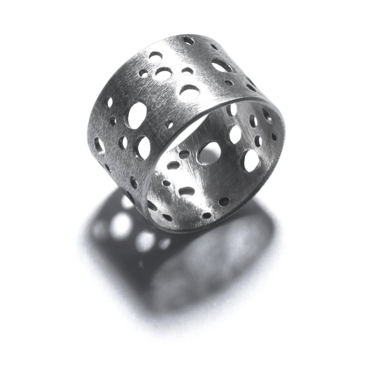 DOTS $100-sterling silver ring with sanding disk texture on flat circles (1/3" kinetic circles) made to size specifications