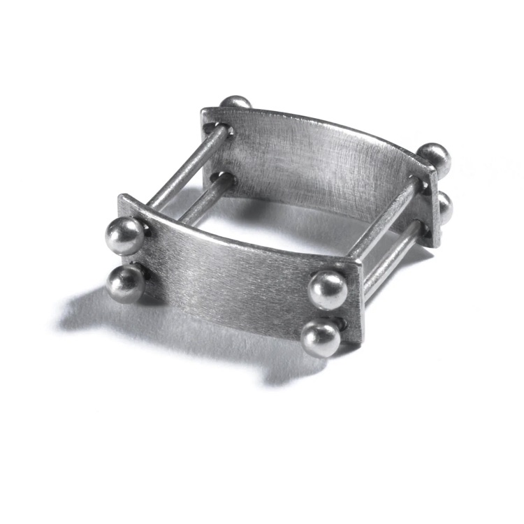 SPHERES $120 & $130-sterling silver rings with all smooth spheres or with laser cut center spheres. The two center balls spin (four 1/4" balls) made to size specifications